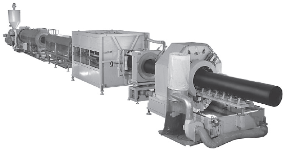 خط اکسترود لوله عموماً از اکسترودر، قالب (دای)، سیستم‌های خنک کننده، کِشنده ، چاپگر، تیغه و تجهیزات جمع آوری تولیدات تشکیل شده است. در بخش‌های بعدی هر یک از این موارد تشریح خواهند شد.
