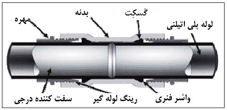 شکل 7. نمونهای متداول از کوپلینگهای مکانیکی نوع مهرهای فشاری برای اتصال دو لوله پلیاتیلنی